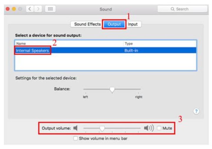 Unplug any headphones or external speakers. On your Mac, choose Apple menu > System Preferences, click Sound, then click Output. Make sure “Internal Speakers” is selected, the “Output volume” slider is not all the way to the left, and the Mute checkbox is not selected.